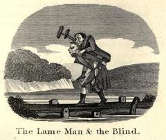 "The Blind Man and the Lame" is a fable that recounts how two individuals collaborate in an effort to overcome their respective disabilities. The theme is first attested in Greek about the first century BCE. Stories with this feature occur in Asia, Europe and North America.