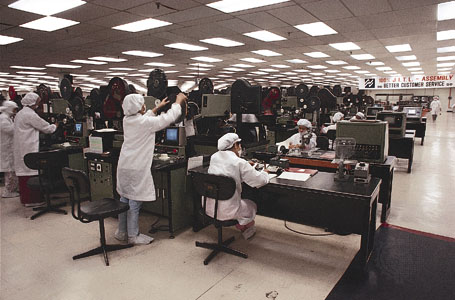 عمال وموظفون في مصنع للالكترونيات في جزيرة بينانگ maleyesya, Malaysia.
