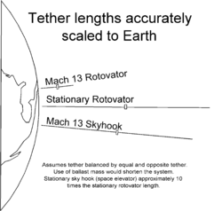 Similar to a hypersonic skyhook, a hypersonic rotovator uses a much shorter tether than its stationary equivalent and picks up its payload at hypersonic speeds. The Hypersonic Airplane, Space Tether, Orbital Launch (HASTOL) is one design for a hypersonic rotovator.