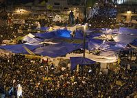 المحتجون في ميدان پويرتا ديل سول، 20 مايو.