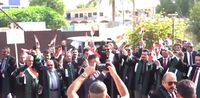 تظاهرات أعضاء النقابة المحامين العراقيين وسط العاصمة بغداد لدعم "الشعب العراقي في الدفاع عن حقوقه الدستورية" ، في 24 أكتوبر 2019.