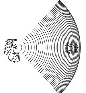 وكما يتضح، فإن صوت التوجيه الواحد (الصرخة) الذي يطلقه الخفاش البني brown bat يضم 50 موجة صوتية تقريباً، ولا يزيد الطول الموجي للأمواج الأولى على نصف الطول الموجي للأمواج الأخيرة في الصرخة الواحدة.[1].