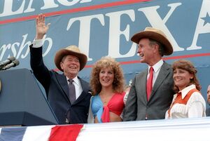Reagan-Bush '84, under the leadership of Ed Rollins, was organized on October 17, 1983.[9] Reagan delayed his campaign announcement as not running would make him a lame duck whereas running would make everything he did be viewed as part of his campaign.[10] He announced that he would seek reelection on January 29, 1984.[11]