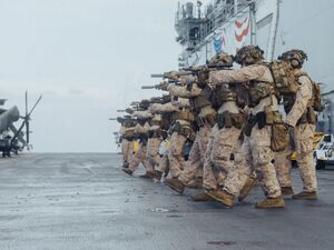 - ^ Reuters, "about 4,000 sailors and Marines";[32] Navy Times/Associated Press, "more than 4,000 sailors and Marines";[33] The New York Times, "The Iwo Jima Amphibious Ready Group—including the U.S.S. San Antonio, the U.S.S. Iwo Jima and the U.S.S. Fort Lauderdale, carrying 4,500 sailors—was steaming near Puerto Rico on Friday, Defense Department officials said. So was the 22nd Marine Expeditionary Unit, with 2,200 Marines";[29] The Guardian, "... involves the Iwo Jima amphibious ready group—including the USS San Antonio, the USS Iwo Jima and the USS Fort Lauderdale carrying 4,500 sailors—and the 22nd Marine Expeditionary Unit, with 2,200 marines";[45]Task and Purpose, "... includes about 1,900 sailors with the Iwo Jima Amphibious Ready Group—which consists of assault ship USS Iwo Jima, the amphibious transport docks USS San Antonio and USS Fort Lauderdale — and another 2,200 Marines with the 22nd Marine Expeditionary Unit, who are embarked on the three ships."[46]