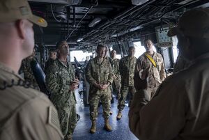 Hegseth ordered the supercarrier يوإسإس Gerald R. Ford deployed to Latin America on 24 October.[111] According to The Washington Post, it is "the world’s largest aircraft carrier, typically carrying dozens of fighter jets, numerous helicopters and more than 4,000 sailors", and its deployment "signaled a major expansion of [the] military campaign against 'Transnational Criminal Organizations' in Latin America".[111] CNN and the Wall Street Journal wrote that the deployment of Carrier Strike Group 12 and Gerald R. Ford would be to the Caribbean;[112][113] The Washington Post and the New York Times wrote that where in Latin America the warship would be positioned, within the Southern Command, was unknown.[111][114] The Ford's full air wing is reportedly embarked.[115] Though her escort typically includes four Arleigh Burke class destroyers—USS Winston S. Churchill, USS Bainbridge, USS Mahan, and USS Forrest Sherman—as of 20 October some of her escorts including the USS Forrest Sherman were still operating independently in other areas of the globe (such as the Red Sea).[115]