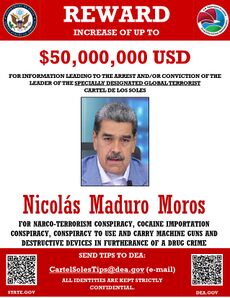 The Trump administration has accused President of Venezuela Nicolás Maduro of trafficking drugs into the US. Earlier in August, the Trump administration raised to $50 million a bounty for the arrest of Maduro over what it alleges to be his role in drug trafficking. Maduro was indicted in the US on drug charges including narcoterrorism in 2020.[24]