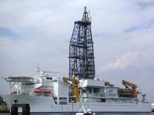 Japan began building a state-of-the-art scientific drilling vessel for research in 2001 with the intent of reaching Earth's mantle and drilling into an active seismogenic zone. The resulting drilling vessel, Chikyū (Japanese for "Planet Earth") features a riser drilling system, a dynamic positioning system, and a high-density mud circulation system to prevent borehole collapse during drilling, among other assets. Chikyu can berth 150 people, cruise at 12 عقدة (22 km/h; 14 mph), and drill more than 7،000 m (23،000 أقدام) below the seafloor in water depths exceeding 2،000 m (6،600 أقدام). Chikyū was damaged during the tsunami of 11 March 2011, and was out-of-service for several months.[3] Chikyū returned to ocean drilling in April 2012.