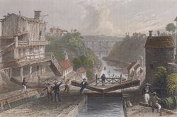 وكانت فيلادلفيا أول مدينة تنشئ خزانا حديثا للمياه أمكن توصيله عبر أنابيب إلى المنازل وتصريف المياه القذرة عبر قنوات الصرف الصحي . وفي العام 1832 زودت بهذا النظام أول أنواع المنازل المزودة بحمامات. أما نيويورك – وهي محاظة بمياه البحر – فكانت تعني مشكلة تكنولوجية أشد . ومع ذلك فقد دشنت نظام كروتون في 4 يوليو 1842 بعد إنشاء قناطر مائية بطول خمسة وأربعين ميلا لجر المياه من هر كروتون في إقليم وستشستر.