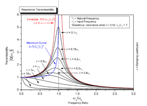 إن أفضل مثال على هذا التجاوب هو الأرجوحة التي تهتز بدور خاص T ثانية (يتعلق بطول الأرجوحة والثقالة الأرضية) وتُزوَّد بدفعات منتظمة كل T ثانية في اتجاه حركتها فتزداد سعة اهتزازاتها باطراد إلى أن تتعادل طاقة كل دفعة تماماً مع ضياع طاقة الأرجوحة في كل اهتزاز (الضياع الناتج عن الاحتكاك مع الهواء أو نقاط التثبيت). ويبين الشكل 1 الخط البياني لتغير سعة اهتزاز المجاوِب بدلالة تواتر القوة المثيرة في درجات مختلفة من التخامد: فإذا كان تخامد النظام المجاوب ضعيفاً كان التجاوب حاداً، وتكون سعة الاهتزاز عظمى حين يكون تواتر القوة المثيرة مساوياً تواتر المجاوب f0، وتتناقص هذه السعة بسرعة حين يختلف تواتر المثير عن f0. أما إذا كان النظام متخامداً بعض التخامد كان التجاوب أقل وضوحاً ويحدث من أجل تواتر f أقل من ويوصف اهتزاز النظام بأنه قسري. وإذا كان تخامد المجاوب شديداً زال التجاوب وكان منحنيه مسطحاً . وتكون آثار التضخيم الناتجة عن التجاوب مفيدة في غالب الأحيان، غير أنها يمكن أن تكون ضارة مثلما يمكن أن يحدث عند اهتزاز جسر معلّق تسير عليه بخطوات متزنة فرقة من الجنود أو عند اهتزاز سفينة بتأثير موج البحر أو ما شابه ذلك. وهناك حالات يجب جعل التجاوب فيها أصغرياً، ويتحقق ذلك بجعل تخامد المجاوب شديداً وتواتره الخاص f0 أكبر كثيراً من تواتر القوة المثيرة f، ويحدث ذلك في طبلة الأذن والصفيحة المهتزة في جهاز الهاتف وفي صفيحة مضخِّم الصوت أو المكروفون، وهي كلها تنقل التواترات المسموعة بأمانة من دون تقويتها.