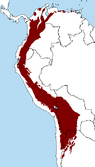 Colombia is one of seventeen megadiverse countries in the world.[7] The country in northwestern South America contains 311 types of coastal and continental ecosystems.[1] As of the beginning of 2021, a total of between 63,000 and 71,000 species are registered in the country,[8][5] with 8803 endemic species, representing near the 14% of the total registered species.[6] Colombia is the country with the most páramos in the world; more than 60% of the Andean ecosystem is found within Colombian territories.[11] Boyacá is the department where 18.3% of the national total area is located.[12] Since December 20, 2014, Colombia hosts 59 protected areas.[13] The biodiversity is highest in the Andean natural region, followed by the Amazon natural region.[14] Since 1998, the Humboldt Institute for Biological Resources in the country has been collecting samples of biodiversity. As of 2014, 16,469 samples, representing around 2530 species from 1289 genera, and 323 families of the Colombian biodiversity have been stored in their archives.[15]