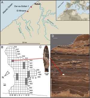 {{cite journal}}: Cite journal requires|journal=(help) - ^ Barton, R. N. E.; Bouzouggar, A.; Collcutt, S. N.; Schwenninger, J. -L.; Clark-Balzan, L. (2009-09-01). "OSL dating of the Aterian levels at Dar es-Soltan I (Rabat, Morocco) and implications for the dispersal of modern Homo sapiens". Quaternary Science Reviews. 28 (19–20): 1914–1931. doi:10.1016/j.quascirev.2009.03.010.