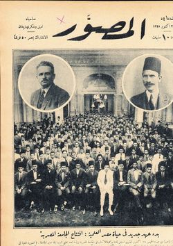 في 19 مايو 1925 كان صدور المرسوم الملكي بإنشاء الجامعة المصرية (جامعة القاهرة) من كليات الآداب والعلوم والطب والحقوق، وقد وقع الاختيار على د. أحمد لطفي السيد رئيسا لها، ولأن ذلك مثل حدثا مهما صدرت مجلة المصور في 30 مايو 1925 وعلى غلافها صورة تضم الأساتذة الذين سيشكلون نواة هذه الجامعة.