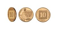 يؤكد بنك إسرائيل أن تصميم عملة 10 أگورات قد أُختير لقيمته التاريخية، وهو "نسخة طبق الأصل من عملة أصدرها ماتاثياس أنتيگونوس (40-37 ق.م.) مع - الشمعدان السباعي".[6]