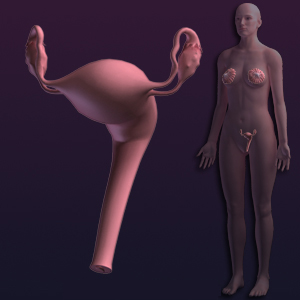 الرحم (Uterus) وهو يشبه شكل الإجاصة المقلوبة وطوله 7.5سم وعرضه 5سم ويبدأ من العنق الرحم (Cervix) ثم جسم الرحم. يبطن الرحم طبقة خاصة تدعى بطانة الرحم (Endometrium) وهذه تثخن قبل مجيء الدورة الشهرية ثم تتساقط أثناء حدوث نزيف الدورة الشهرية لتتكون بدلها طبقة جديدة.تقسم الرحم بتضيق يسمى مضيق الرحم قسمين: جسم الرحم في الأعلى وهو الأكبر وعنق الرحم في الأسفل وهو الأصغر.