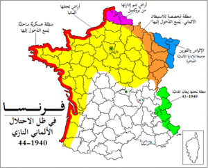 وفي 22 يونيو وقعت فرنسا معاهدة الاستسلام في نفس المكان ونفس العربة التي وقع فيها الألمان معاهدة استسلامهم في الحرب العالمية الأولى[82]، تبع ذلك تقسيم فرنسا إلى طرفين، شمالي تحت الحكم الألماني، وجنوبي تحت الحكم الفرنسي وعاصمته فيشي برئاسة فيليب بيتان، وحظيت إيطاليا بجزء صغير جنوب شرق البلاد، كما سمح الألمان ببقاء الأسطول الفرنسي في البحر المتوسط تحت تصرف حكومة فيشي.[75]، وفي المقابل نصب الجنرال شارل ديجول نفسه رئيساً لحكومة فرنسا الحرة في المنفى بلندن ودعا الفرنسيين إلى استكمال القتال ضد الألمان في خطاب بثته إذاعة بي بي سي في 18 يونيو قال فيه:[83][84]