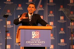 دخل سباق الترشح لرئاسة الولايات المتحدة الأمريكية عن الحزب الديموقراطي للأنتخابات الرئاسية عام 2008، السيناتور هيلاري كلنتون، والسناتور باراك أوباما.