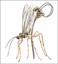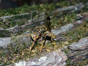 وبعض أنواع هذه الحشرة يقوم بثقب الأشجار بوساطة حامل البيض، حيث تضع بيضها في ثقوب تسكنها يرقات الخنافس والأنواع الأخرى من الزنابير.