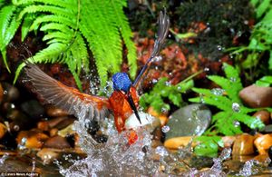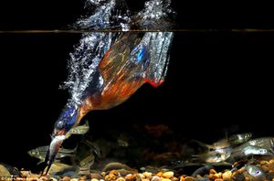 His striking photographs show a family of kingfishers diving into water to hunt.