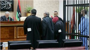 الساعدي القذافي في جلسة لمحاكمته في طرابلس، 13 مارس.