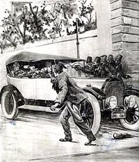 وتجمع المارة على صوت طلقات الرصاص فانطلق المنفذون في السيارة المعدة للهرب لتنطلق بالجميع بعيدا عن المكان بعد أن القى عبدالحميد عنايت قنبلته دون أن يجذب فتيلها حتى يفرق جموع المتجمهرين.