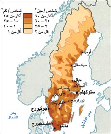 السويد ( []ˈswdən[] SWEE-dən; سويدية: Sverige [] ( استمع))، رسمياً مملكة السويد (بالسويدية: Konungariket Sverige )، هي بلد سكانديناڤية في شمال أوروپا. تتشارك السويد بحدودها مع النرويج وفنلندا وتتصل بالدنمارك عن طريق جسر-نفق عبر أوريسند. بمساحة 450.295 كم²، تعتبر السويد ثالث أكبر بلد في الاتحاد الأوروپي من حيث المساحة، بإجمالي سكان يقارب 9.7 مليون نسمة.[1] الكثافة السكانية في السويد منخفضة وتبلغ 54 نسمة لكل كم²، ويتركز معظم السكان في النصف الجنوبي من البلاد. حوالي 85% من السكان يعيشون في المناطق الحضرية.[10] معظم المنطقة الجنوبية زراعية، بينما تغلب الغابات على الشمال.