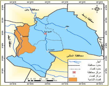 25. ^ عدنان رشيد أبو الريحة، محافظة القادسية دراسة في جغرافية السكن، أطروحة دكتوراه ( غير منشورة)