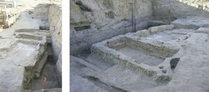 تم الحفر في هذا القطاع الأثري الذي يمتد على مساحة مقدارها هكتاراً واحداً خلال الحملات الأثرية الخمس في الفترة ما بين 1996 و2002، في حين كرست الحملة السادسة عملها في عام 2007 كمرحلة أولى بدارسة المواد الأثرية للموقع. وقد أثبت علم الآثار بأن تاريخ تأسيس المدينة يعود إلى عام 780م وإلى وجود استيطان شبه مستمر حتى يومنا هذا في تل القرية. ومن خلال المسح الطبقي تم العثور على 15 طبقة استيطان تندرج ضمن عشرة مراحل زمنية رئيسية.