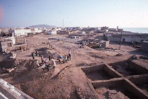 منذ عام 1999، شرعت البعثة الأثرية في عملها داخل المدينة القديمة بغرض تقييم بعض التغيرات في مواد البناء وقامت بمسح عينة من المباني. وحّل مكان المباني المعمورة من الطوب والحجارة التقليدية وبشكل تدريجي البناء الأسمنتي والخرسانة المسلحة. وتم تسجيل وجود بعض المباني المتواضعة للصيادين والمباني المتوسطة والكبيرة للتجار إلى جانب مستودع صيد مزدوج(حوش) وقبة ضريح في مقبرة الشيخ سعد.