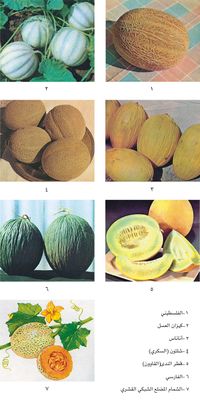 ـ قطر الندى (هني ديو) Honeydew: تراوح ثماره في شكلها من كروية إلى بيضوية، ملساء غير مضلعة، وقطرها 15ـ20سم، لونها كريمي عند النضج (الشكل ـ 5).