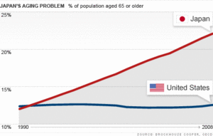 Population aging can potentially change American society as a whole. Many companies use a system, in which older, tenured workers get raises and benefits over time, eventually hitting retirement.[154] With larger numbers of older workers in the workforce, this model might be unsustainable. In addition, perceptions of older adults in society will change, as the elderly are living longer lives and more active than before.[149][155] Changing from a youth-focused culture to having a more positive attitude towards aging and being more respectful of seniors like Japan can help elderly Americans extend their life span and live out their sunset years in dignity. American society will have to confront the negative stereotypes of aging and ageism.[155] In order to win elections, politicians will have to be more attentive towards the elderly.[156] Age discrimination is a major concern for retirees looking to return to the workforce. Businesses might be reluctant to hire them, thinking that they struggle with problem-solving or with new technologies, even though this is not necessarily true.[157]