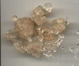 مسحوق الصمغ العربي. يذاب نسبة مقدار الربع من المسحوق إلى ثلاثة أرباع من الماء المقطر لجعل السائل قابلا لإذابة الطلاء.