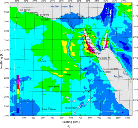 - ^ أ ب ت ث Ibrahim, A (2012). "Renewable energy sources in the Egyptian electricity market: A review". Renewable & Sustainable Energy Reviews. 16 (1): 216–230. ISSN 1364-0321.