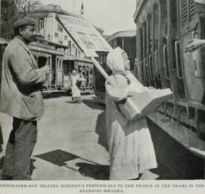 طفل يبيع جرائد لركاب الترامواي بالعتبة الخضراء أثناء ثورة 1919.