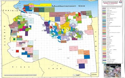 خريطة تفصل الحقوق الاقتصادية لليبيا. من (http://en.noclibya.com)