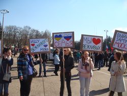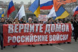 كانت أزمة القرم 2014 تتكشف في جمهورية القرم ذاتية الحكم، في أعقاب فبراير الثورة الأوكرانية 2014، حيث تمت الإطاحة بالرئيس الأوكراني ڤيكتور يانوكوڤيتش. نظمت الاحتجاجات مجموعات من الروس بشكل أساسي عارضوا الأحداث في كييف وأرادوا علاقات وثيقة أو الاندماج مع روسيا، بالإضافة إلى الحكم الذاتي الموسع أو الاستقلال المحتمل لشبه جزيرة القرم. واحتجت مجموعات أخرى، بما في ذلك تتار القرم، على دعم الثورة. في 27 فبراير، استولى رجال عسكريون غير معروفين ملثمين على عدد من المباني الهامة في القرم، بما في ذلك مبنى البرلمان ومطاران.[129] تحت الحصار، رفض المجلس الأعلى لشبه جزيرة القرم حكومة الجمهورية المتمتعة بالحكم الذاتي واستبدل رئيس مجلس وزراء القرم، أناتولي موهيليوڤ بـ سيرگي أكسيونوڤ.[129]