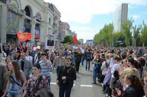 طوال شهري مارس وأبريل 2014، انتشرت الاضطرابات الموالية لروسيا في أوكرانيا، حيث أعلنت الجماعات الموالية لروسيا "الجمهوريات الشعبية" في الأوبلاستات في دونيتسك و لوهانسك ، اعتبارا من 2017[تحديث] وكلاهما خارج سيطرة الحكومة الأوكرانية جزئياً.[151]