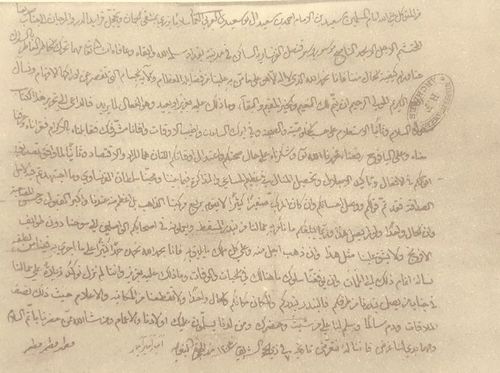رسالة الإمام سعيد بن أحمد البوسعيدي إلى الملك لويس السادس عشر من فرنسا، عن طريق الموسو روسو، قنصل الفرنساوية الساكن في مدينة بغداد، في 7 ذو الحجة 1204 هـ الموافق 18 أغسطس 1790م