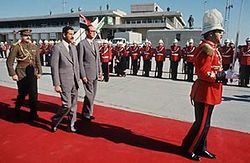 جاك شيراك في زيارة للعراق وفي استقباله صدام حسين.