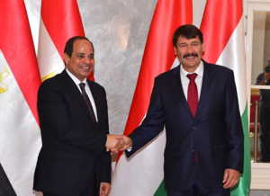 الرئيس السيسي ونظيره المجري يانوش كادار لدى زيارة السيسي المجر، 3 يوليو 2017.