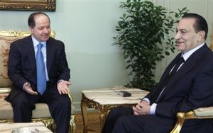 الرئيس حسني مبارك ورئيس اقليم كردستان العراق مسعود برزاني في القاهرة، 6 يوليو، 2010.