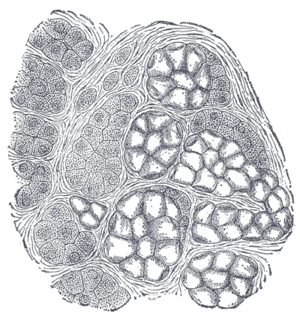 Human submaxillary gland. At the right is a group of mucous alveoli, at the left a group of serous alveoli.