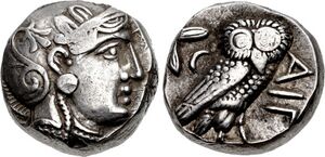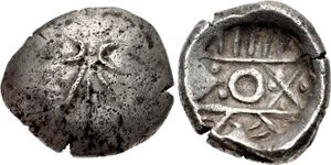 Achaemenid coin, an imitation of an Athenian coin type, of the sort found in the Kabul hoard.[5]
