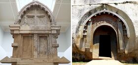 146. ^ According to David Napier, author of Masks, Transformation, and Paradox, "In the British Museum we find a Lycian building, the roof of which is clearly the descendant of an ancient South Asian style.", "For this is the so-called "Tomb of Payava" a Graeco-Indian Pallava if ever there was one." in "Masks and metaphysics in the ancient world: an anthropological view" in Malik, Subhash Chandra; Arts, Indira Gandhi National Centre for the (2001). Mind, Man, and Mask (in الإنجليزية). Indira Gandhi National Centre for the Arts. p. 10. ISBN 9788173051920.