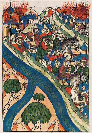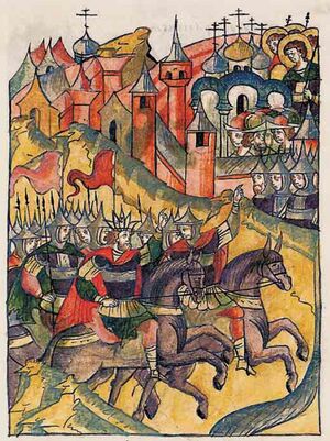 In Ryazan, the okolnichi Khabar Simsky was in charge(Ivan Vasilyevich Obrazets-Dobrynsky). Evstafiy Dashkevich, who was in the Crimean army, wanted to take Ryazan by cunning. To do this, he offered its inhabitants to buy prisoners, so that, having caught the opportunity, they could get through the city gates together with the buyers. For his part, the khan, for the surest success in the enterprise, wanted to lure the governor of Khabar to himself and sent him, as a serf of his tributary, an order to appear in his camp. However, Khabar ordered to answer him that he still did not know whether the Grand Duke had really pledged to be a tributary and assistant to the khan, asked that he be given evidence for this, and the khan sent him a letter written in Moscow as proof. At this very time, Dashkevich, not abandoning his intention, was getting closer and closer to Ryazan. He purposely gave some captives the opportunity to escape from the camp to the city. Crowds of Tatars chased the fugitives and demanded their extradition. The Ryazanians handed over the prisoners, but despite this, the crowds of Tatars condensed more and more under the walls of the city, when suddenly there was a volley from the city cannons, which were commanded by the German Johann Jordan. The Tatars scattered in horror. Khan sent to demand the extradition of Jordan, but Khabar rejected this demand. Magmet-Girey, who did not come to take the city by force, failed to take Ryazan by cunning and prompted by the news of the enemy movements of the Astrakhans, left and left in the hands of Khabar a letter containing the obligation of the Grand Duke to pay tribute to him. Khan sent to demand the extradition of Jordan, but Khabar rejected this demand. Magmet-Girey, who did not come to take the city by force, failed to take Ryazan by cunning and prompted by the news of the enemy movements of the Astrakhans, left and left in the hands of Khabar a letter containing the obligation of the Grand Duke to pay tribute to him. Khan sent to demand the extradition of Jordan, but Khabar rejected this demand. Magmet-Girey, who did not come to take the city by force, failed to take Ryazan by cunning and prompted by the news of the enemy movements of the Astrakhans, left and left in the hands of Khabar a letter containing the obligation of the Grand Duke to pay tribute to him.