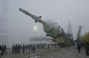 Soyuz TMA-2 moves to launch pad, about to carry the first resident crew to the International Space Station.
