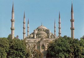 يعد مسجد السلطان سليمان في استنبول من أشهر المساجد العثمانية (تاريخه 1550م). يقوم في مركز متميز يطل منه على القرن الذهبي. وترتكز قبته الكبيرة على أربع دعائم مربعة، وله أربع مآذن. وتجدر الإشارة إلى المباني الملحقة، كالمدرسة وأجنحة سكن الطلاب والسوق والترب. وهناك مسجد السلطان أحمد (تاريخه 1609م)، له ست مآذن تضفي الجمال على المبنى، وقد اشتهر هذا المسجد باسم المسجد الأزرق نسبة إلى البلاط الجداري التزييني في داخله.
