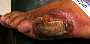 - العدوى الجرثومية التي تسبب اهتراء أنسجة القدم المصابة.