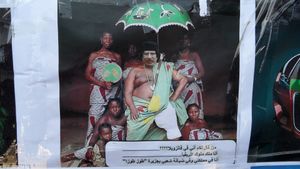 تستخدم بعض الصور الساخرة من القذافي صورًا حقيقية، تم التلاعب بها لإهانة الحاكم. وفي إحدى الصور المعروضة في واجهة محل في شارع فشلوم بطرابلس، تم تركيب وجه القذافي على صورة ملك إفريقي، بجوار العديد من زوجاته. والصورة الأصلية هي لجوزيف لانغانفين، ملك داهومي في بنين، وقد التقطها دانييل لينيه في عام 1990.[12]