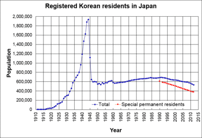 - ^ NOZAKI, Yoshiki; INOKUCHI Hiromitsu; KIM Tae-Young. "Legal Categories, Demographic Change and Japan's Korean Residents in the Long Twentieth Century". Japan Focus. Archived from the original on 2007-01-25.