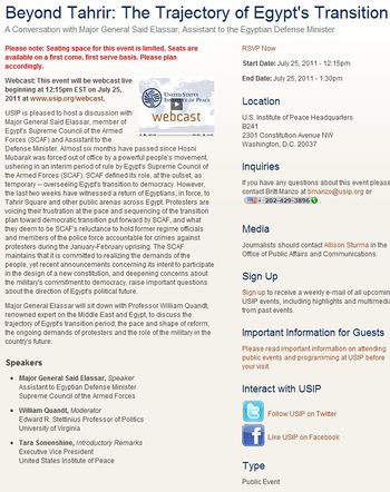 - ^ "Beyond Tahrir: The Trajectory of Egypt's Transition". usip. 2011-07-20. Retrieved 2011-07-21.